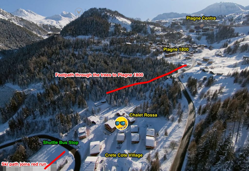 Chalet Rossa is one of a small group of twinned chalets comprising Crete Cote Village. Les Chalets de Crete Cote Village are in La Plagne, which sits in the French Alps on the edge of the Vanoise National Park. Crete Cote is set off the main route to the La Plagne villages, 1km before Plagne 1800.