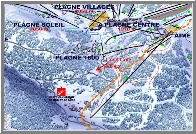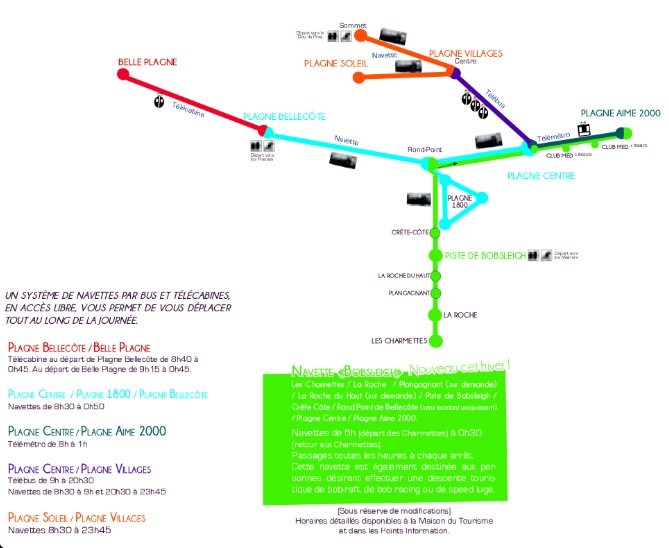 The free navette shuttle bus service stops at Crete Cote Village. This service runs hourly from 6am until 12.30am. You could choose to take the bus down to La Roche 1500 or the bus up to Plagne 1800/ Plagne Centre.